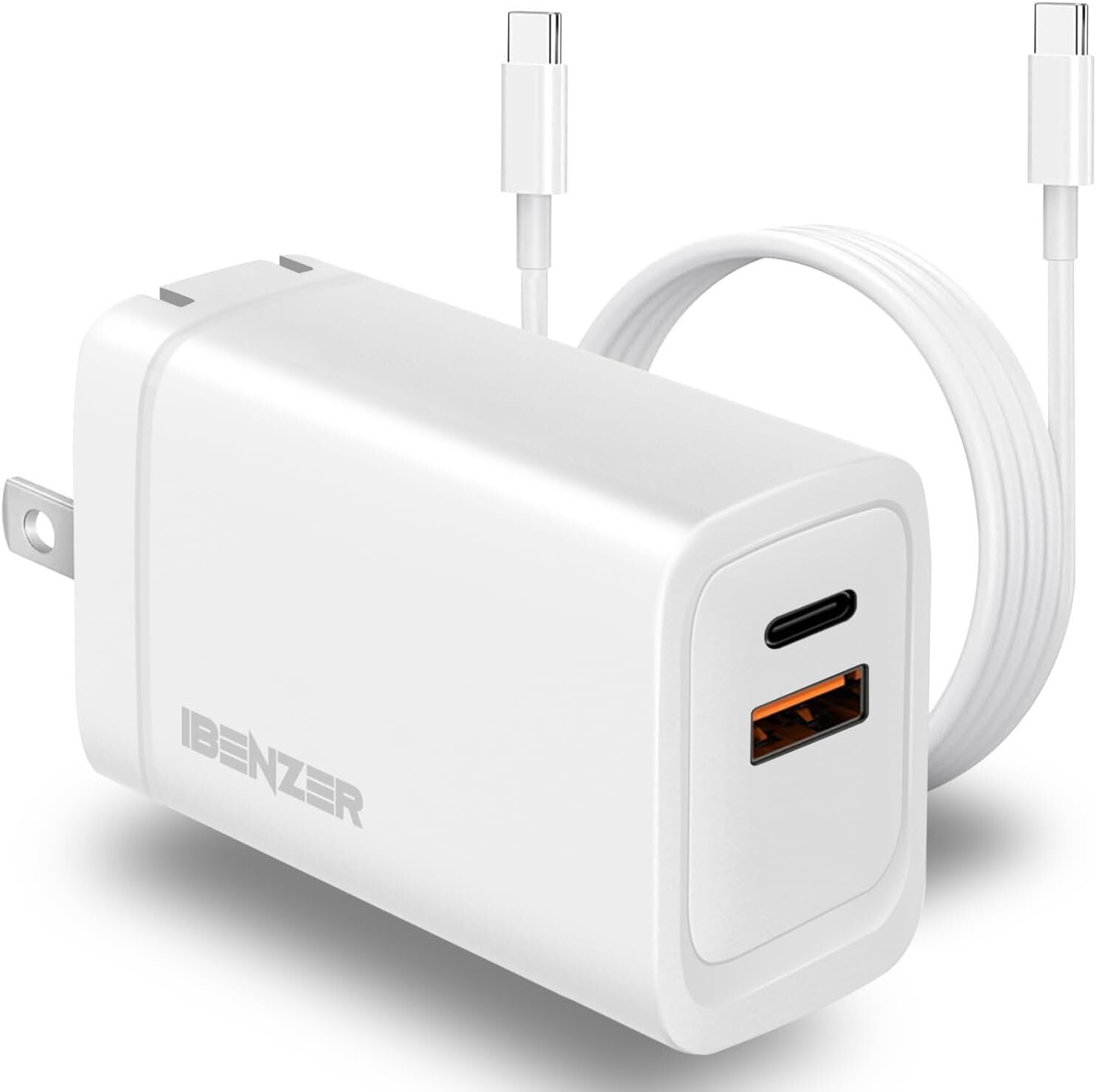 65W PD 3.0 Foldable 2-Port Wall Charger – White