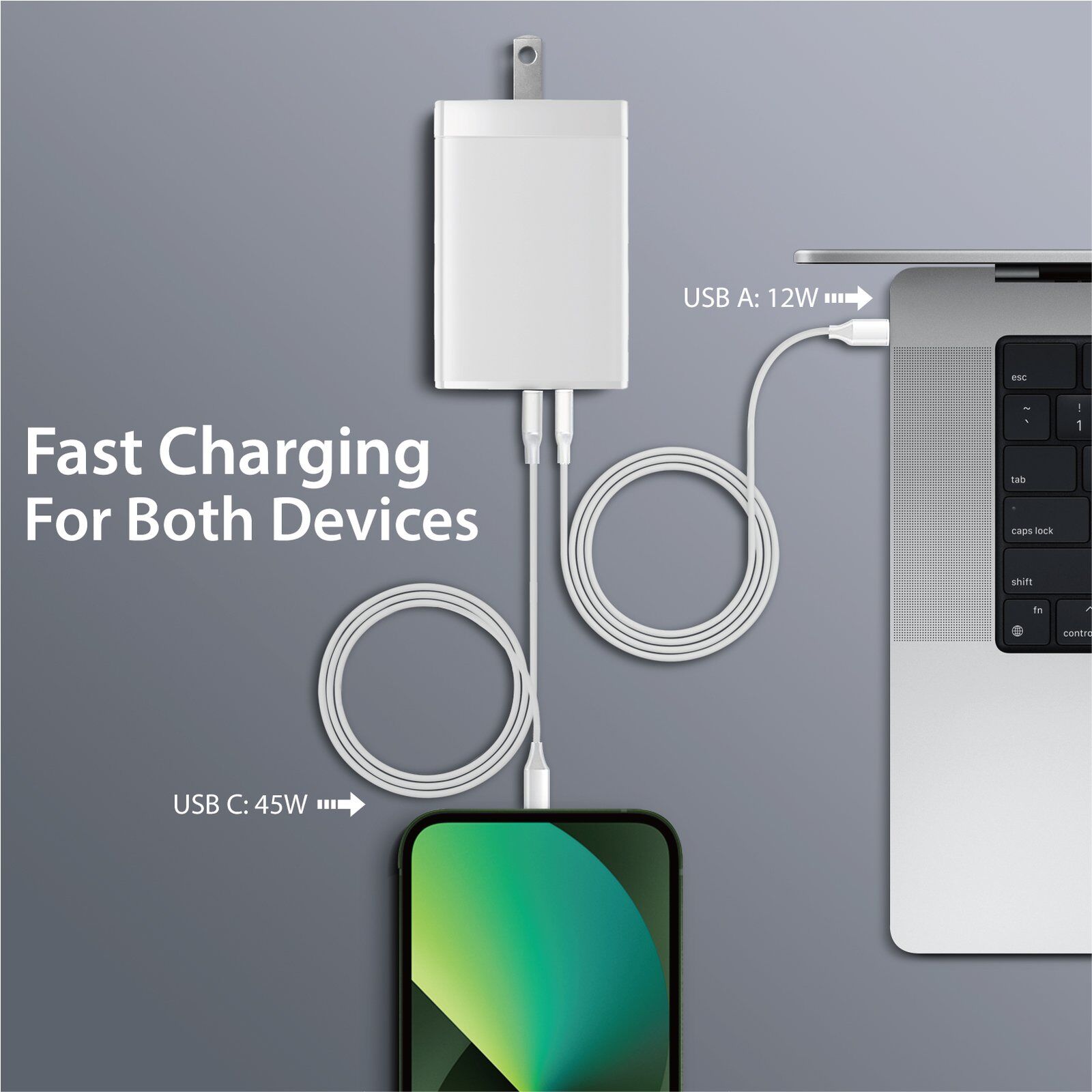 Introducing the FusionPower 65W Dual-Port Fast Charger. Seamlessly power up two devices concurrently with its USB-C and USB-A ports. Witness high-speed charging that’s not only efficient but also versatile. Welcome to the realm of fast, adaptive, and reliable charging — energize your technology, revitalize your day!
